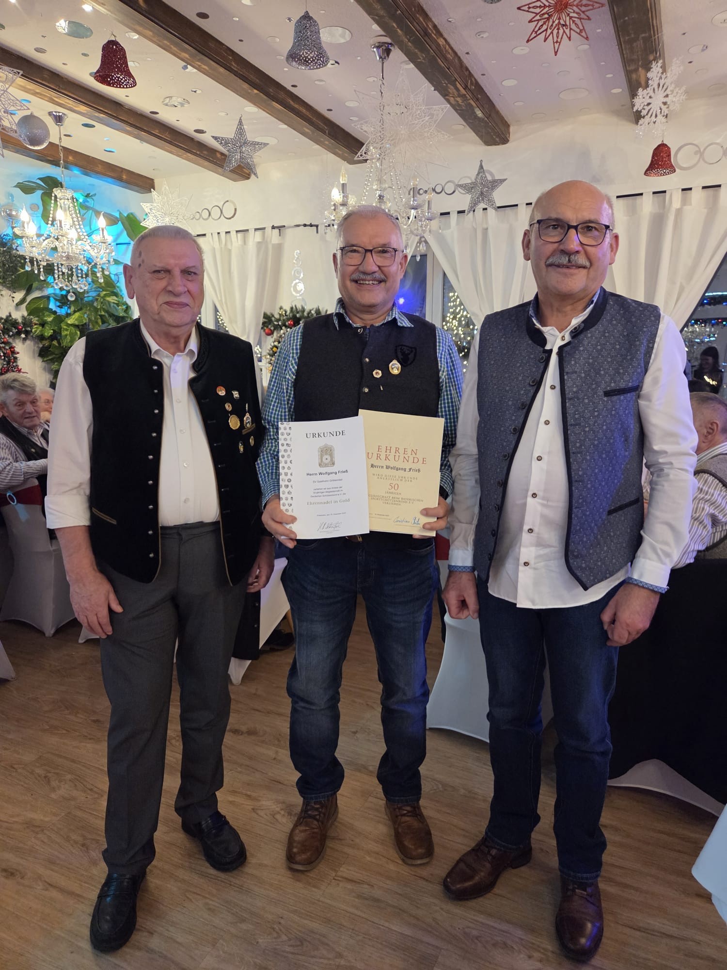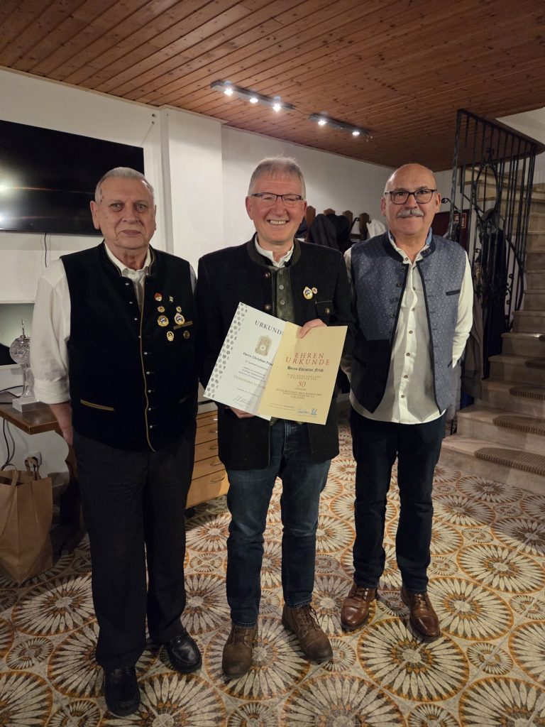 die 50-jährige Mitgliedschaft im Bayerischen Sportschützenbund, im Deutschen Schützenbund, sowie im Schützenverein „Spielhahn“ Gröbenried mit den Ehrenzeichen