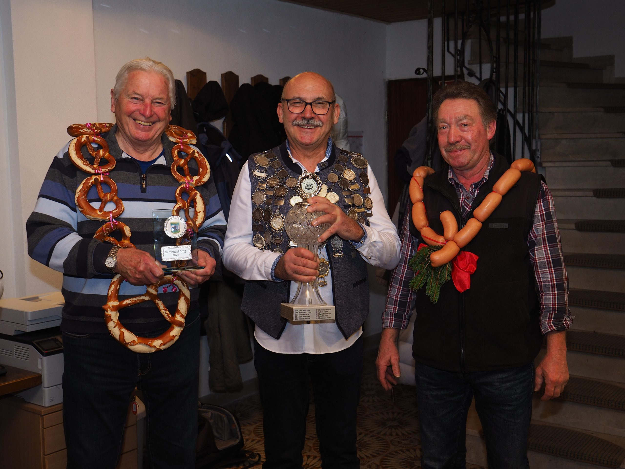 Brezenkönig Klaus Mahl sen. Schützenkönig Egon Feichtmeier Wurstkönig Benno Hartmaier