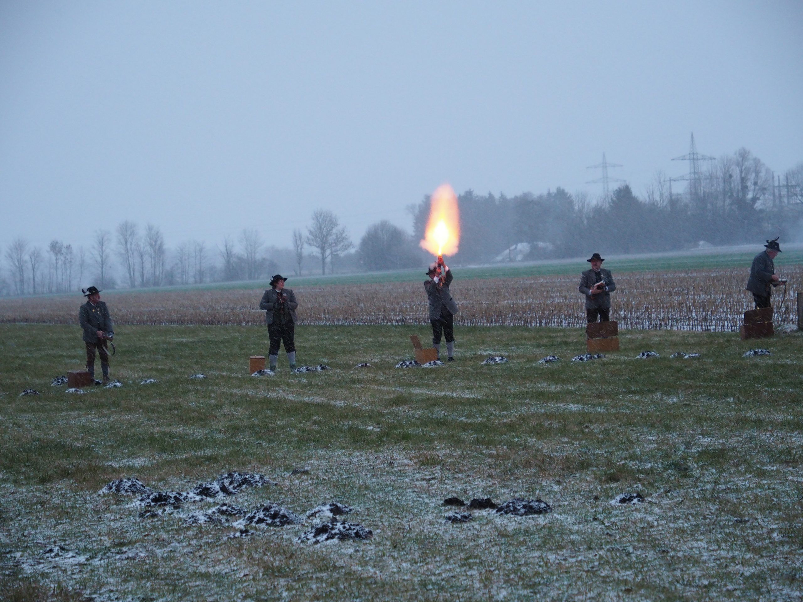 Böllerschützen Gröbenried im Schneesturm